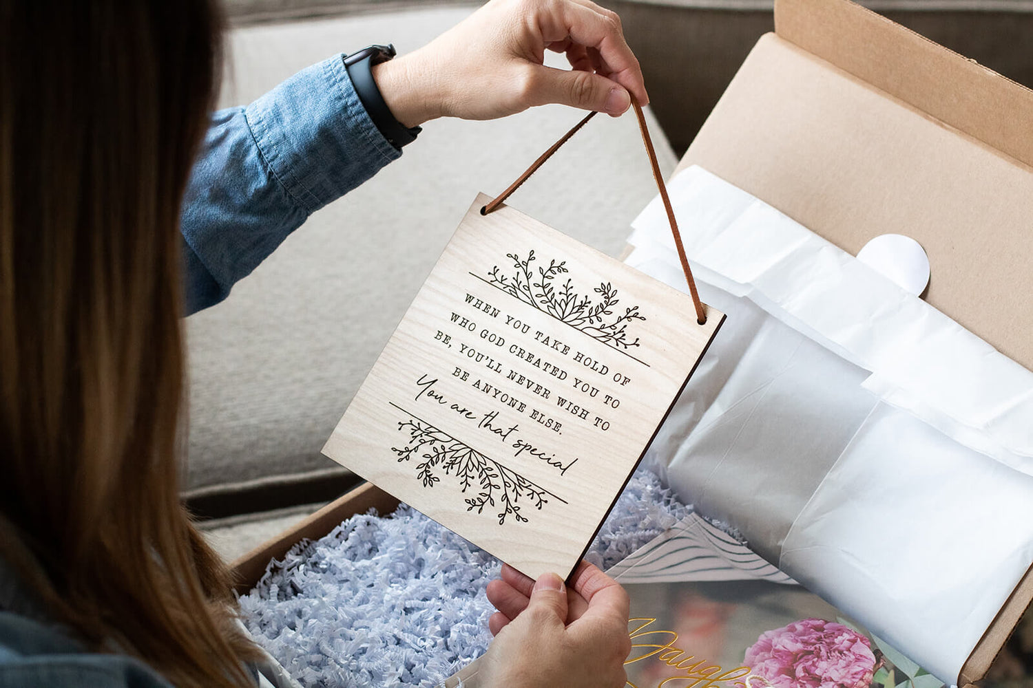 "Gift for my friend arrived at the perfect time! Everything included looked great and the attention to detail was much appreciated. Lovely reminder of a favorite verse in the home! :)"