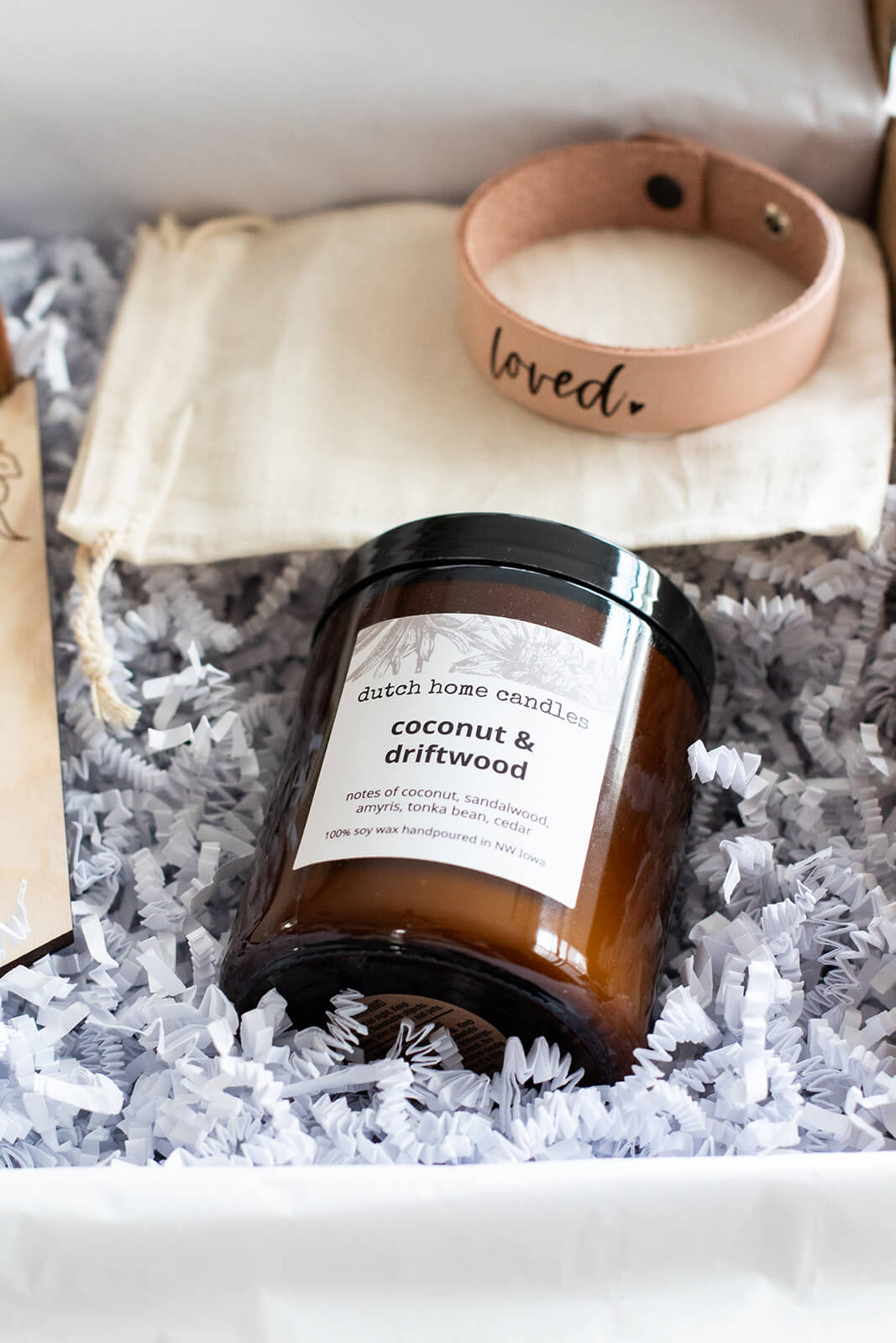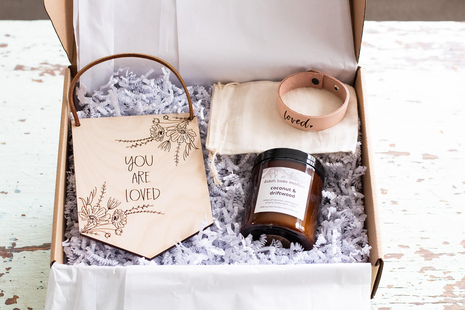 • Laser Engraved “Loved” Bracelet enclosed in a muslin bag